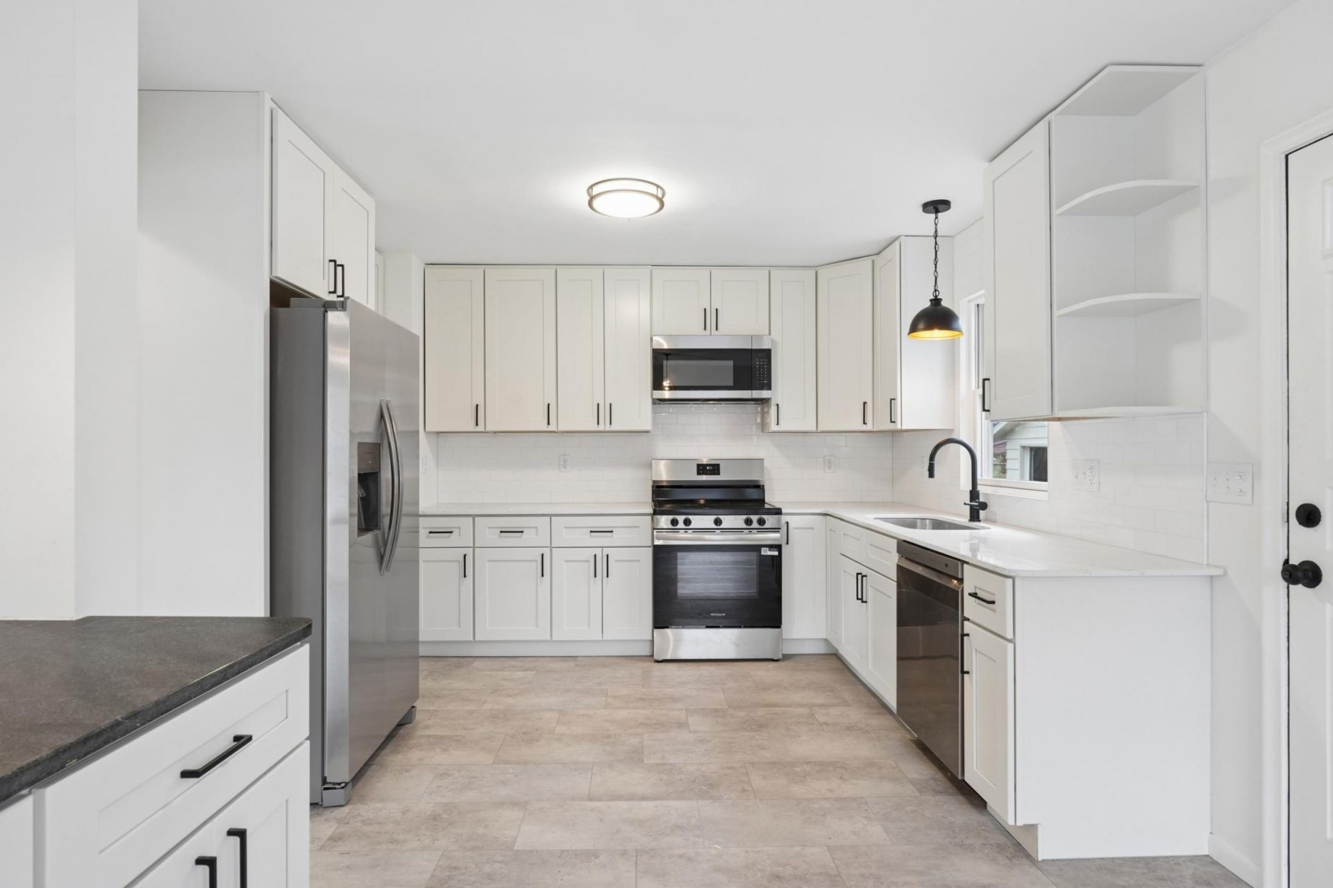 Fully renovated and move-in ready home in Saint Paul! This beautifully updated property features a bright open-concept layout with a completely remodeled kitchen offering quartz countertops, new appliances, refinished hardwood floors, and a fully updated bathroom. Major improvements include a new roof (house and garage),windows, freshly painted exterior, new garage doors with automatic opener system, and modern lighting throughout.The lower level provides a bonus room plus an unfinished ½ bathroom, offering great potential for additional living space. Step outside to enjoy a park-like yard with mature trees, while city-owned green space directly across the street adds privacy and a peaceful setting. A shed on the backyard provides additional storage. Conveniently located near shopping and dining, including Hmong Village, ALDI, and local favorites like Mai's Kitchen, plus close to outdoor recreation at Phalen Park.Entrance steps, driveway, and landscaping will be updated and refreshed by closing, enhancing curb appeal and overall presentation.